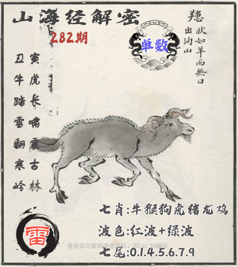282期:九肖 | 马猪狗鸡兔牛龙猴蛇 | 牛41中 |